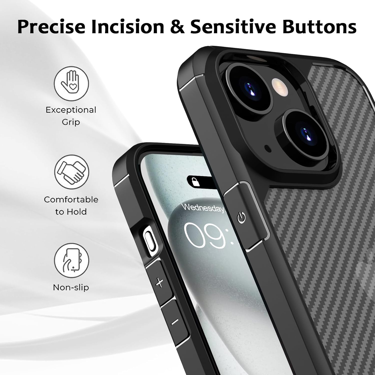 - [ZERO FINGERPRINTS & SCRATCHES] This iPhone 13 Case is made of 3D Carbon Fiber and Soft TPU material. Semi-permeable matte fiber textures, realizes true zero fingerprint & zero scratches.