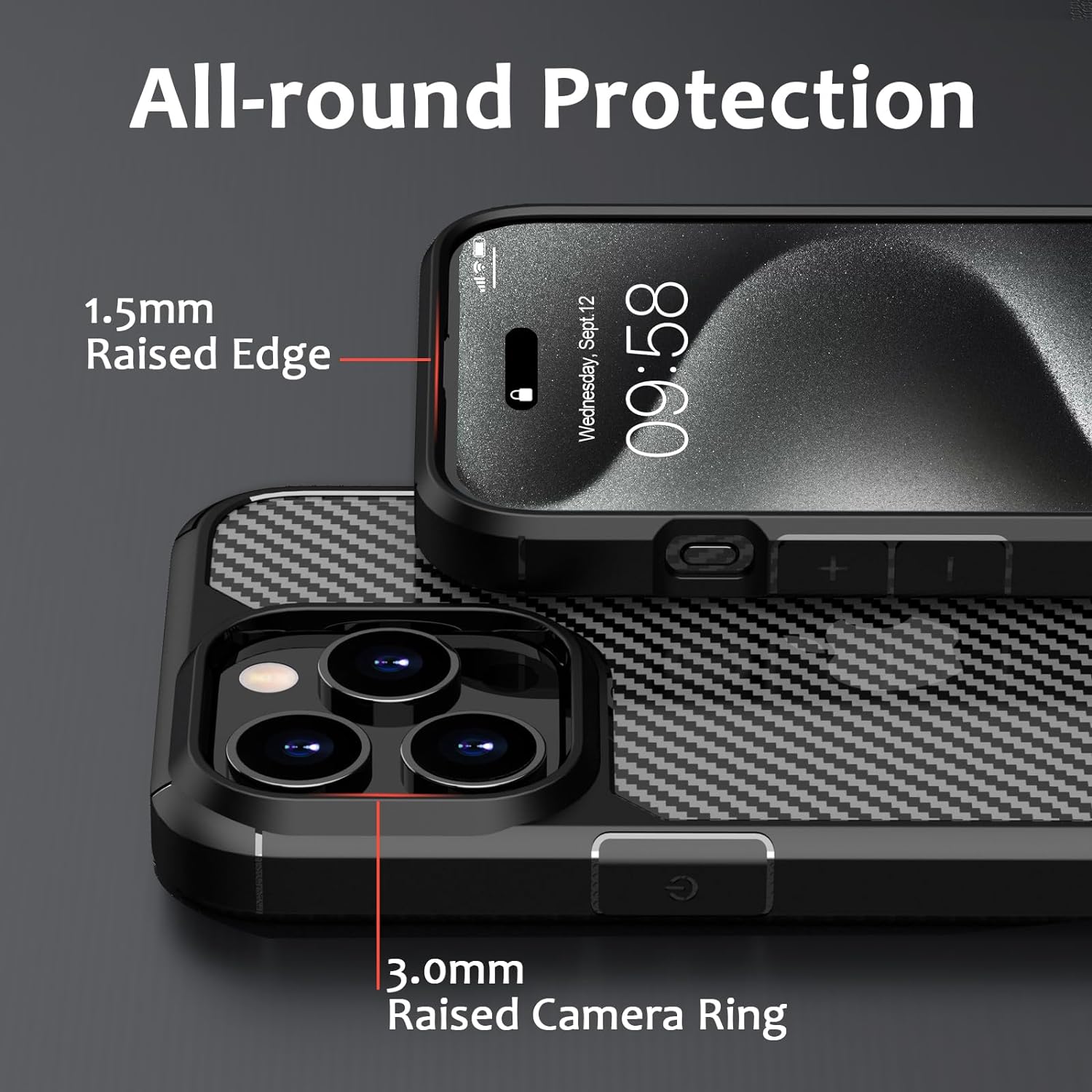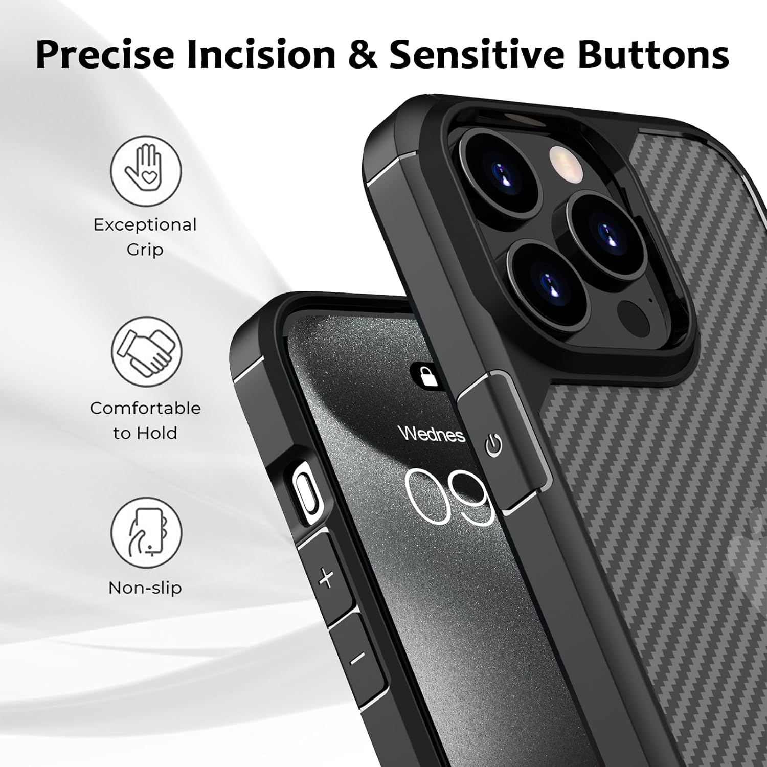 - [ZERO FINGERPRINTS & SCRATCHES] This iPhone 15 Pro Case is made of 3D Carbon Fiber and Soft TPU material. Semi-permeable matte fiber textures, realizes true zero fingerprint & zero scratches.