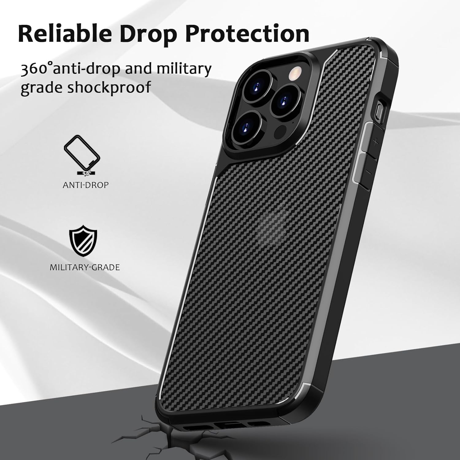 CASEEX Back Cover Compatible with iPhone 15 Pro Case, Carbon Fiber Series [Military Grade Drop Tested], Anti Fingerprints & Scratch, Translucent Slim Fit Shockproof Phone Case