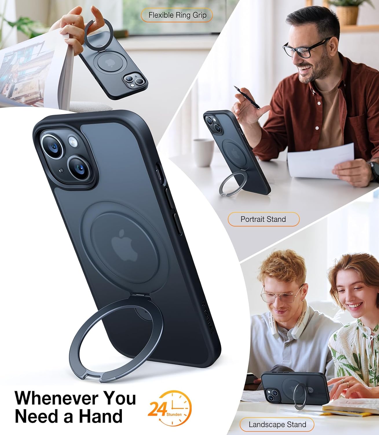 - [Versatile Magnetic Ostand] Combines the function of phone stand , popsocket with magnetic shockproof case. Advanced halbach mag structure deliver a magical attach experience and faster wireless charging in an instant, perfect for taking selfies, vlogging, live streaming and family gathering. Adjustable angle gives you flexibility for best viewing angle. Vertically or horizontally
