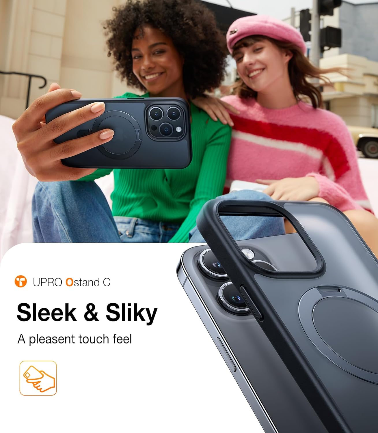 - [Versatile Magnetic Ostand] Combines the function of phone stand , popsocket with magnetic shockproof case. Advanced halbach mag structure deliver a magical attach experience and faster wireless charging in an instant, perfect for taking selfies, vlogging, live streaming and family gathering. Adjustable angle gives you flexibility for best viewing angle. Vertically or horizontally
