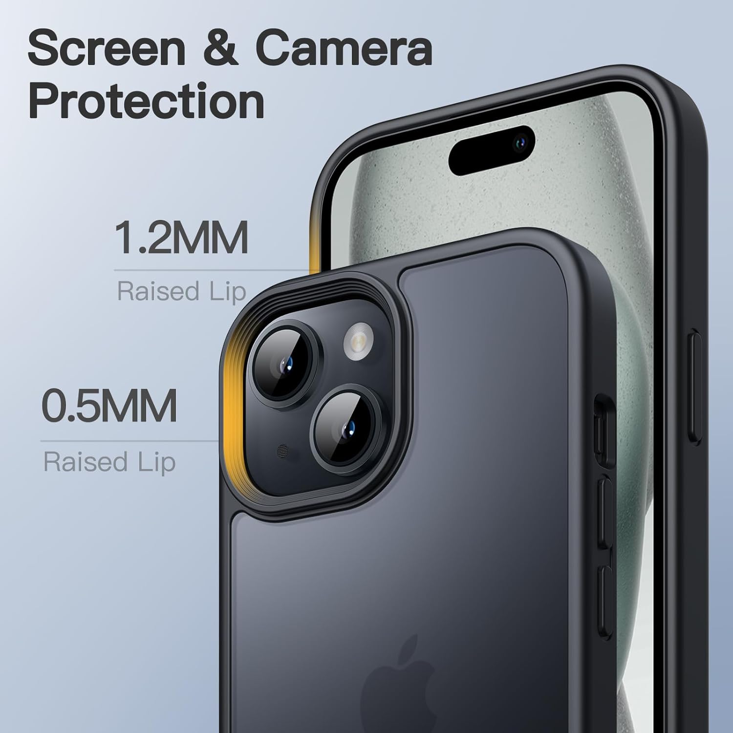 Caseex Matte Case for iPhone 15 Plus 6.7-Inch, Shockproof Military Grade Drop Protection, Frosted Translucent Back Phone Cover, Anti-Fingerprint (Black)