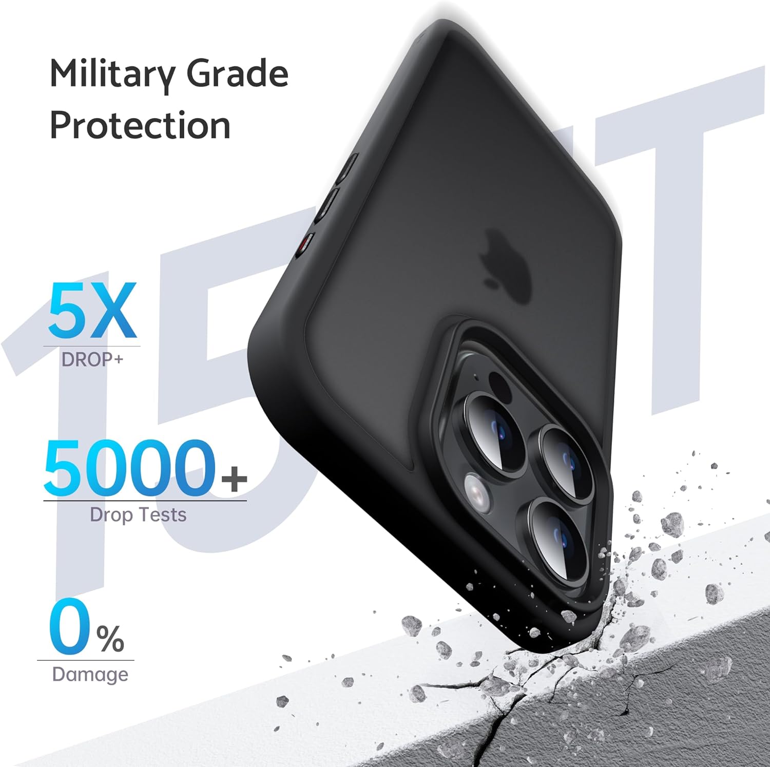 Caseex Matte Case for iPhone 15 Pro Max 6.7-Inch, Shockproof Military Grade Drop Protection, Frosted Translucent Back Phone Cover, Anti-Fingerprint (Black)