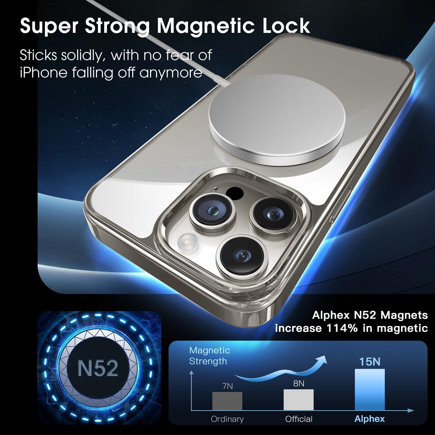 [Unparalleled Magnetic Power] Enhanced with an Caseex specific magnetic ring and an array of 36 N52 triangle magnets, our case touts an impressive magnetic force of 2855.19gf. This exceptional strength ensures seamless compatible with various magnetic accessories, ranging from chargers to car mounts.