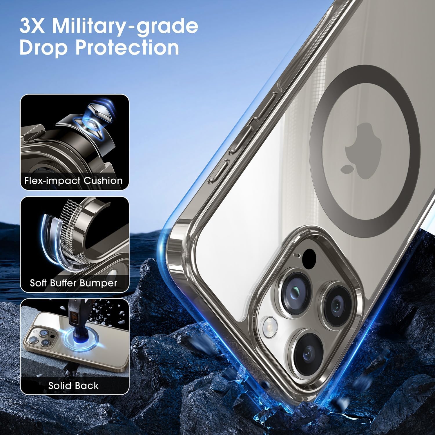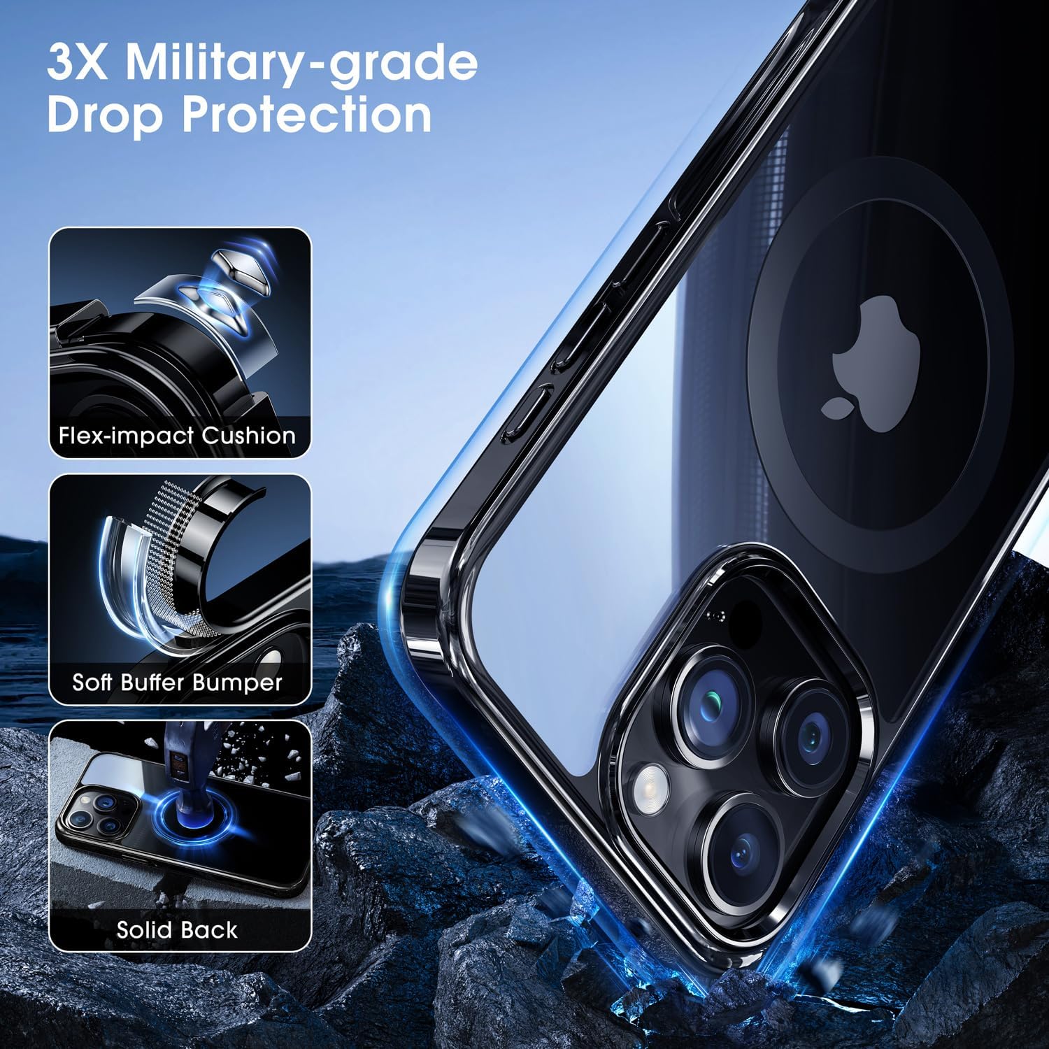 [3X Military Grade Protection] Our phone case is enduring over 4,500 12-feet drop tests with the phone intact. The double-cushioned structure, absorbs a whopping 98% of impact force during drops. Both the camera and screen are thoroughly protected.