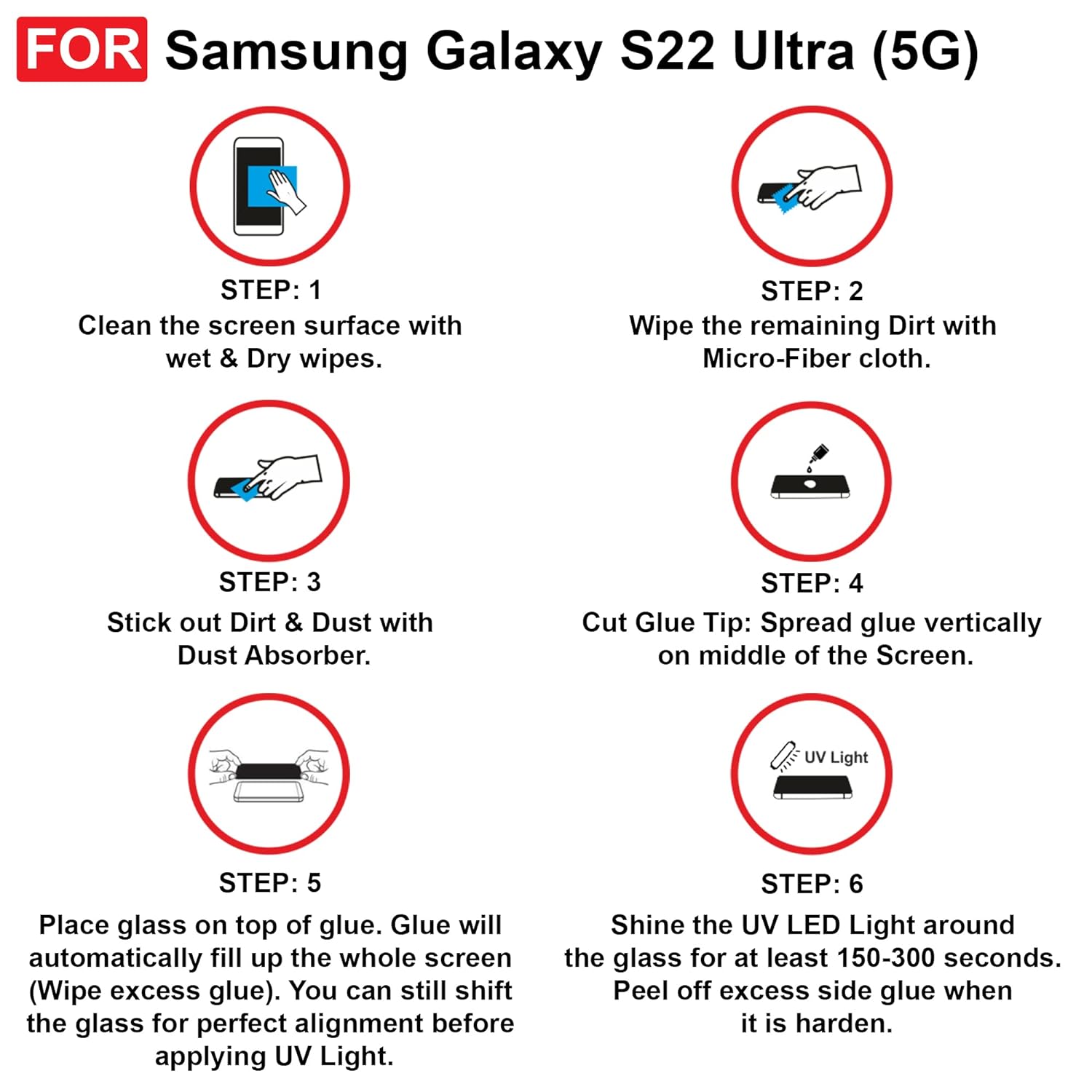 Easy Installation Kit: The package includes an easy installation kit, featuring UV adhesive and a UV light, making the installation process straightforward and hassle-free. Achieve a perfect fit without bubbles or misalignment.