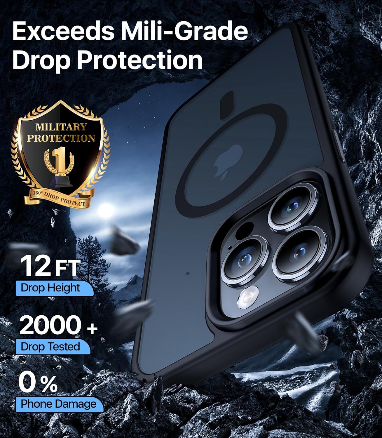 - [Trusted Military-Grade Protection] Say NO to expensive 1000 repair bills! This iPhone 15 Pro protective case was tested over 2000+ times,10FT drop test, and 0% damage! This case design with tough blast-proof hard back panel, a flexible TPU bumper of 4-ply cushioning structure, and 360 shock-absorbing airbags, which can effectively disperse the violent impact when the iPhone falls and collides.You can always trust this case to keep your iPhone safe and sound.