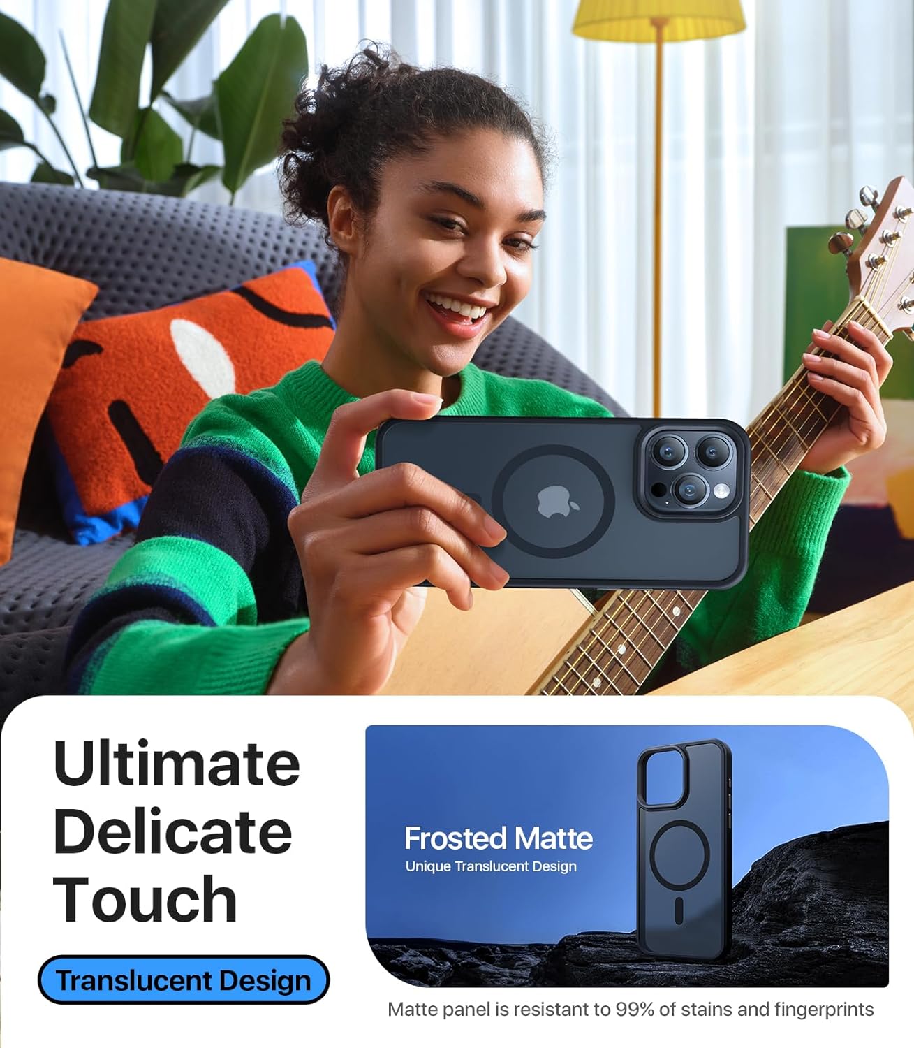 - [Premium Touch Feel] Sleek, Stylish, Smooth, love at first touch! The edge of iPhone case iPhone 15 Pro Max is made of soft silicone for a delicate and comfortable grip experience. The translucent matte back panel uses an upgraded curing nano-oleophobic coating process to provide you with a silky touch every time. It is resistant to all smudges and scratches and fully shows the brilliant colors of your new iPhone.